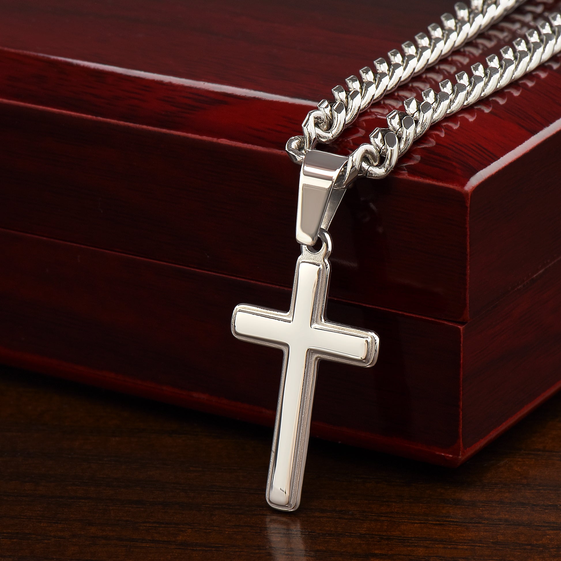 Our Cuban Link Chain with Artisan Cross is more than just jewelry — it’s a heartfelt tribute you can wear every day. Each pendant can be personalized on the back with a name and date, making it the perfect keepsake to remember someone special.
